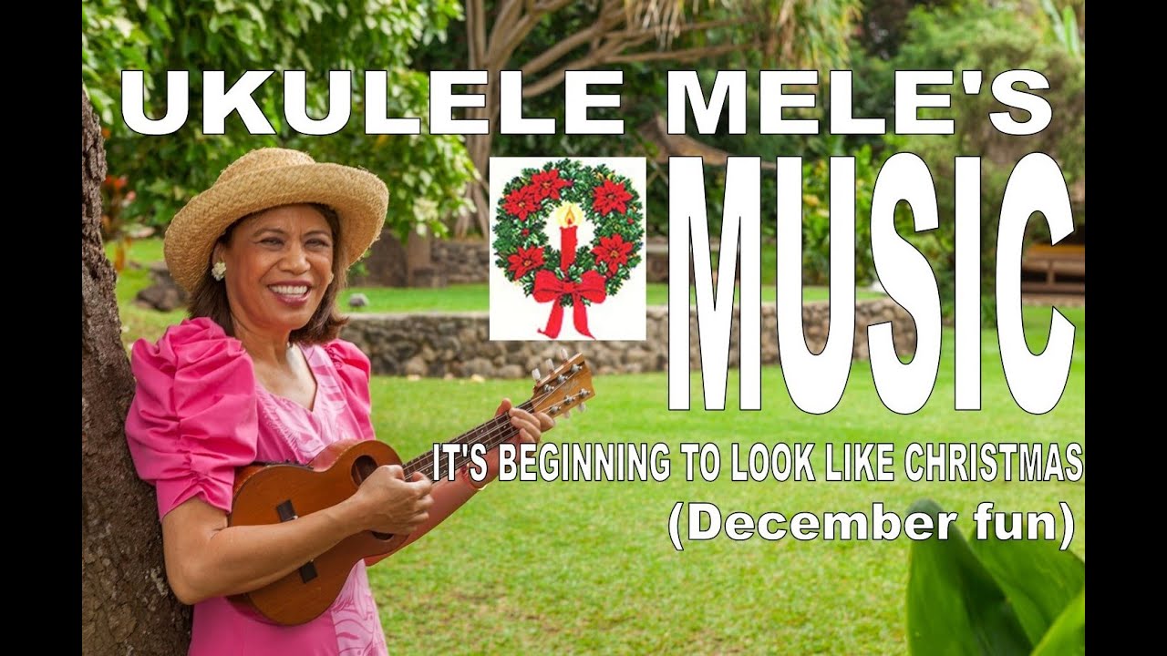 Mele Fong and her husband Richard Tom – The Hawaiian Serenaders – sing in It’s Beginning To Look Like Christmas on ‘ukulele and u-bass over photos of holiday fun during past Decembers on the mainland and on Maui (words below). #playuke #ukulelemusic